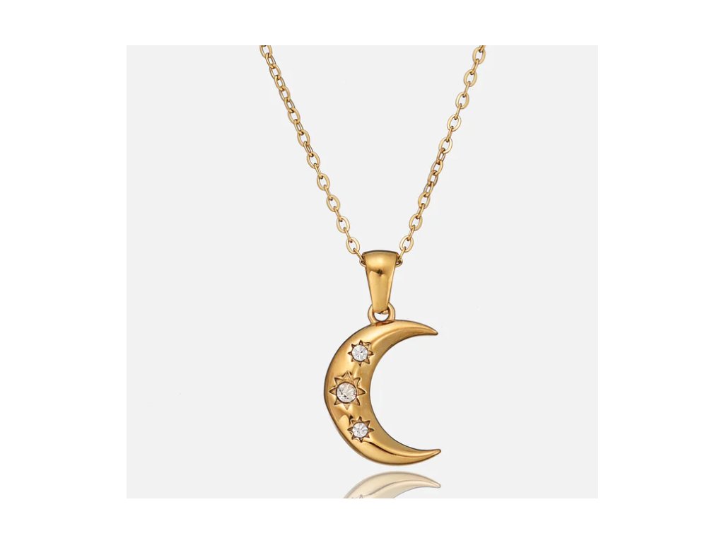 Náhrdelník s príveskom mesiaca so zirkónmi vás zaručene očarí svojim dizajnom. Náhrdelník je pozlátený 18k žltým zlatom.