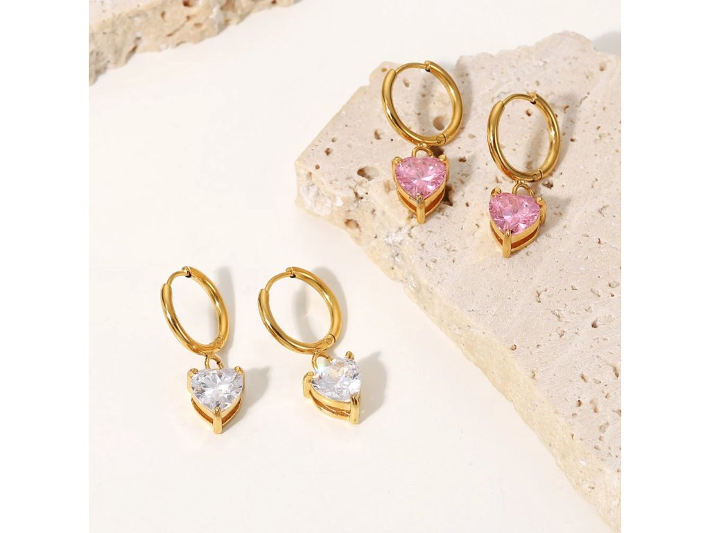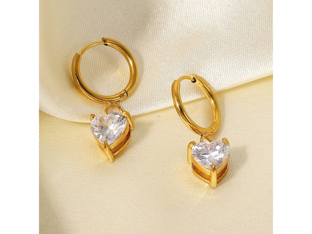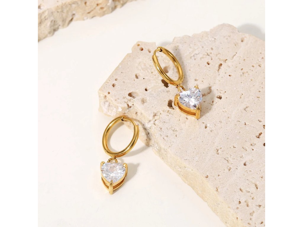 Jemné náušnice s 18K pozlátením a zirkónmi v tvare srdca sú nádherným šperkom, ktorý dodá dotyk elegancie do každého outfitu.
