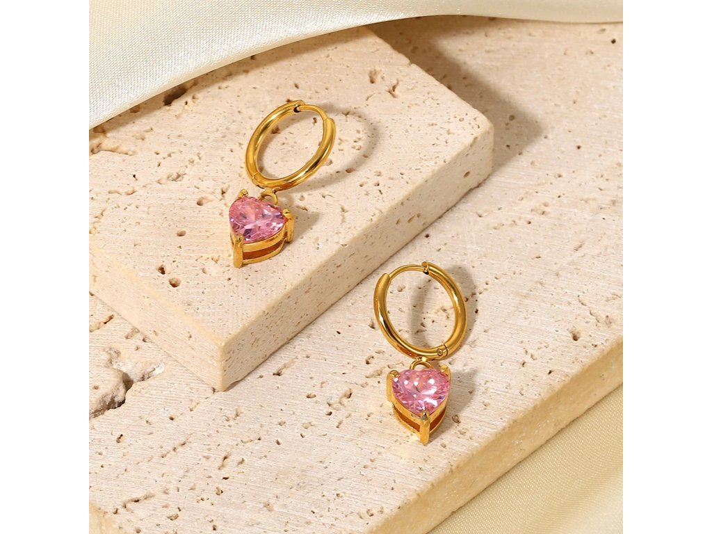 Jemné náušnice s 18K pozlátením a zirkónmi v tvare srdca sú nádherným šperkom, ktorý dodá dotyk elegancie do každého outfitu.