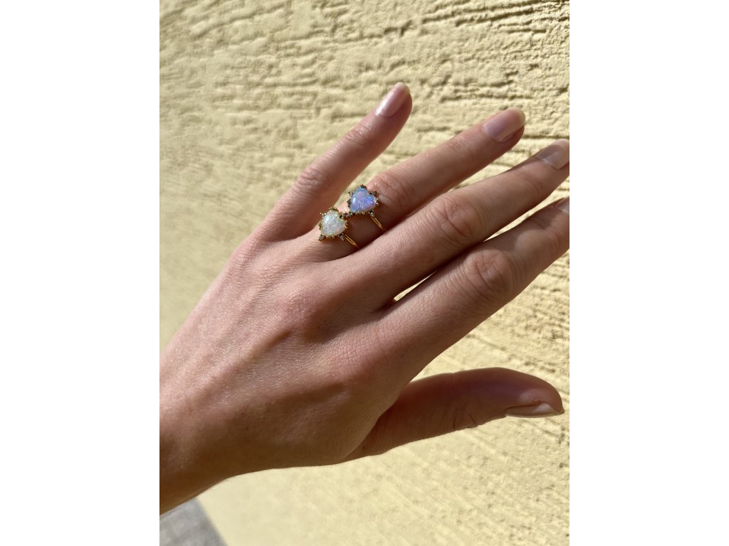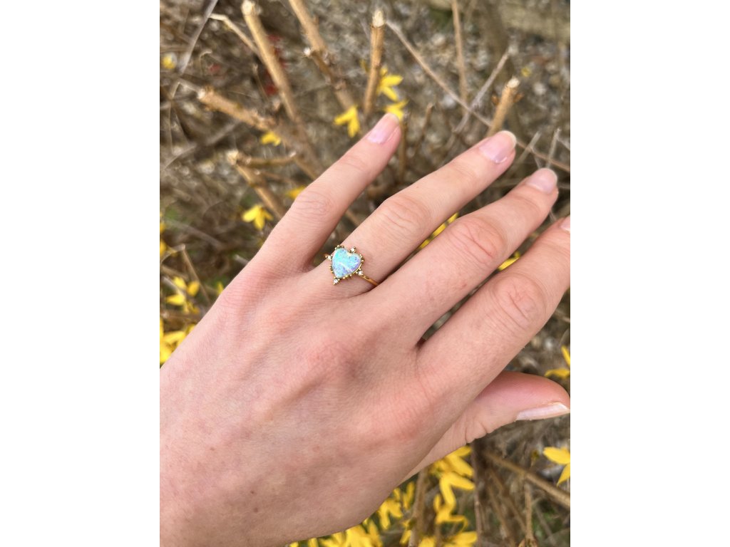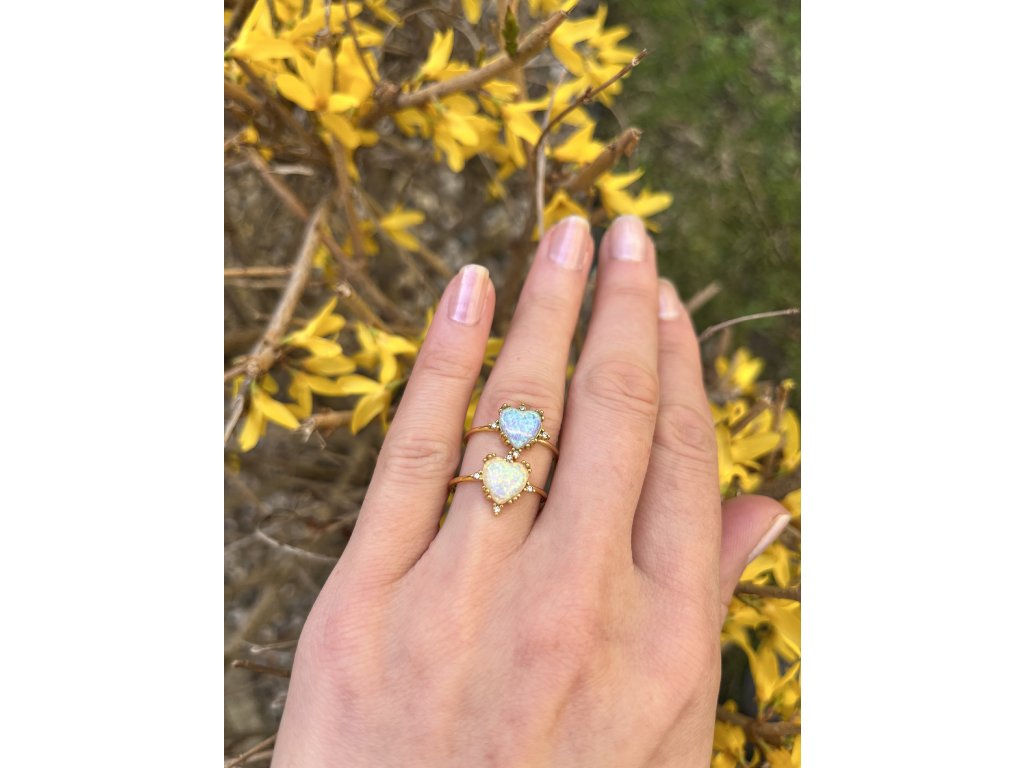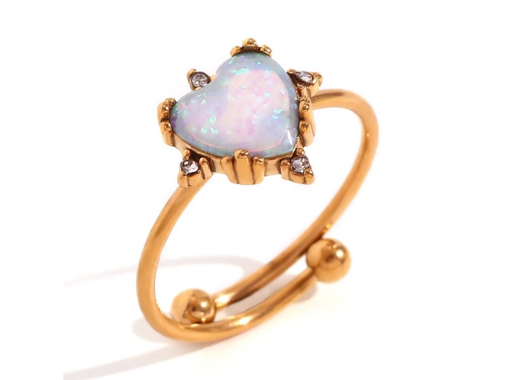 Pozlátený 18K dámsky prsteň s opálovým srdcom. Vyrobený z chirurgickej ocele.