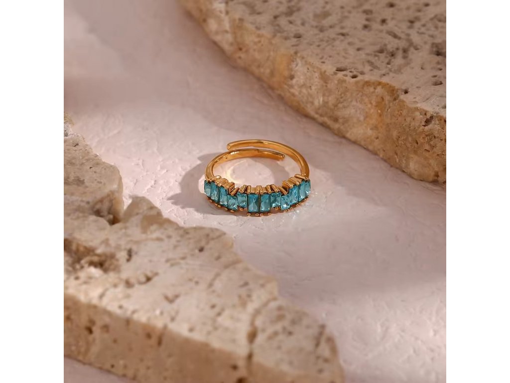 Pozlátený prsteň s modrými zirkónmi